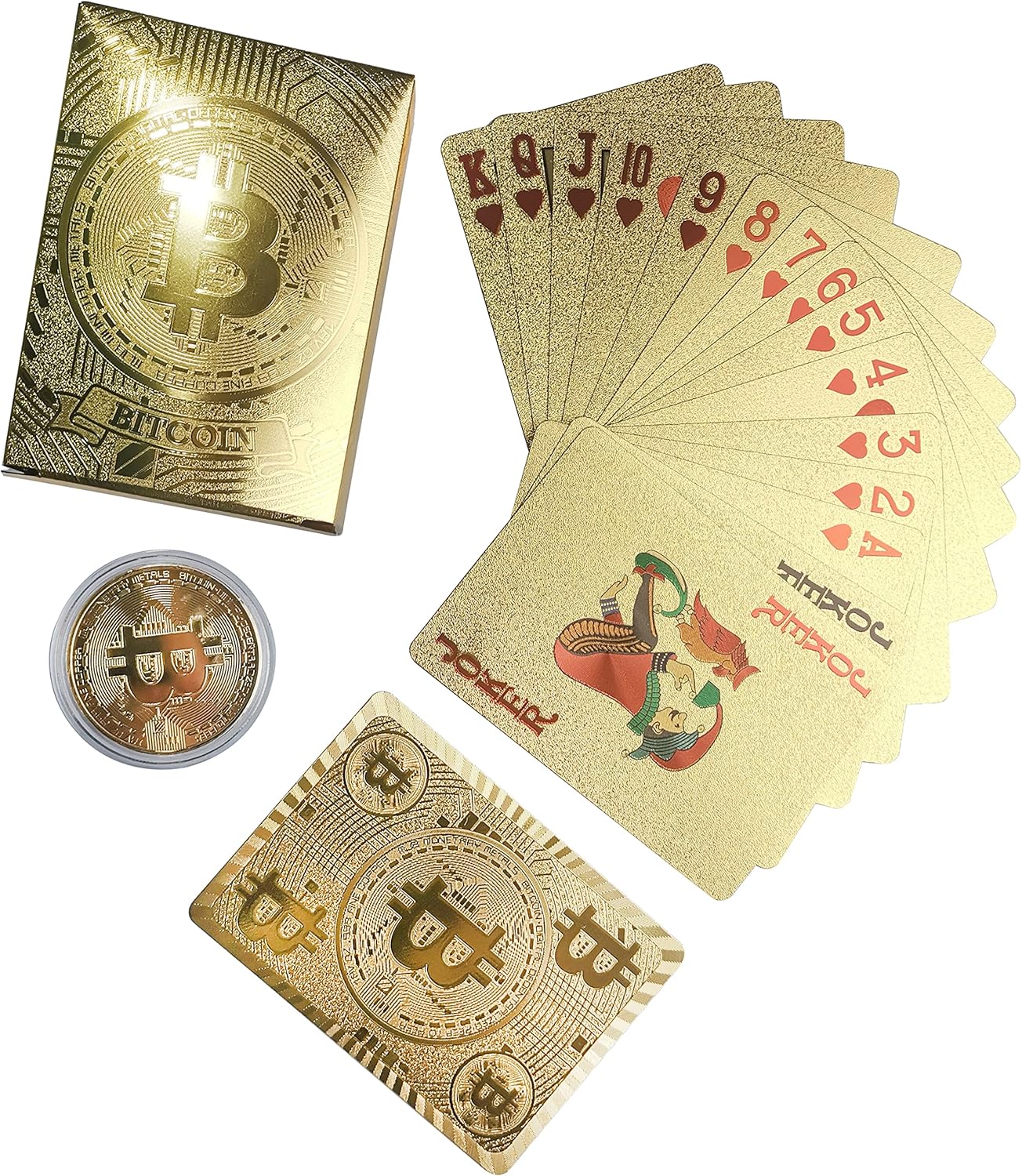 Rich Life Style Bitcoin Waterproof Gold Playing Cards with Commemorative Bitcoin Encased in Protective Plastic